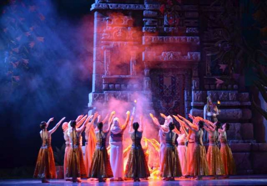 Solor begibt sich mit der Wasserpfeife im Opium-Rausch ins „Königreich der Schatten“. In seinen Träumen und im Übergang zur Wirklichkeit erscheint ihm Nikia im Braut-Schleier als heiliges Versprechen einer ewigen Liebe. Dieses nach apollonischen Prinzipien gestaltete symphonische Ballet-Blanc, der virtuose Tanz der verhüllten Nikia mit ihren himmlischen Gefährtinnen in ihrer ätherischen Schönheit, wurde zur Legende. Die Uraufführung war 1877 in St. Petersburg, choreographiert vom Großmeisters der klassischen Ballett-Komposition Marius Petipa. Als Auftakt der restaurierten Staatsoper unter den Linden (www.staatsbalett berlin.de) hat der russischen Ballett-Choreograph Alexei Ratmansky, mehrfach ausgezeichnet mit der goldenen Maske, nach elfjähriger Auseinandersetzung mit den überlieferten Notationen von Petipa das sinnliche Liebesdrama vor der Szenerie eines märchenhaften Indien exzellent inszeniert. „Bis zum jetzigen Zeitpunkt sind Bajaderen stets ein poetisches Geheimnis geblieben wie die orientalischen Schönheiten aus Mohammeds Paradies.“ (Thèophille Gautier)