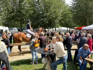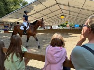 Die VIP-Gäste hatten das Privileg, die majestätische Kulisse des Schlosses Münster und des Schlossplatzes aus nächster Nähe zu erleben. Martino Brando gelang es sogar, diesen einzigartigen Moment festzuhalten, kurz bevor ein überraschender Regenguss die Szene in ein schillerndes Spektakel verwandelte. Die VIP-Gäste wurden Zeugen eines beeindruckenden Naturphänomens, das die Atmosphäre des Turniers noch weiter aufheizte. Die Ausstellung rund um den großen Turnierplatz versetzte die Besucher in Begeisterung. Die sorgfältig dekorierten Stände waren nicht nur die perfekte Anlaufstelle, um nützliche Artikel für Pferd und Reiter zu erwerben, sondern boten auch Raum für die Entdeckung von Kuriositäten.